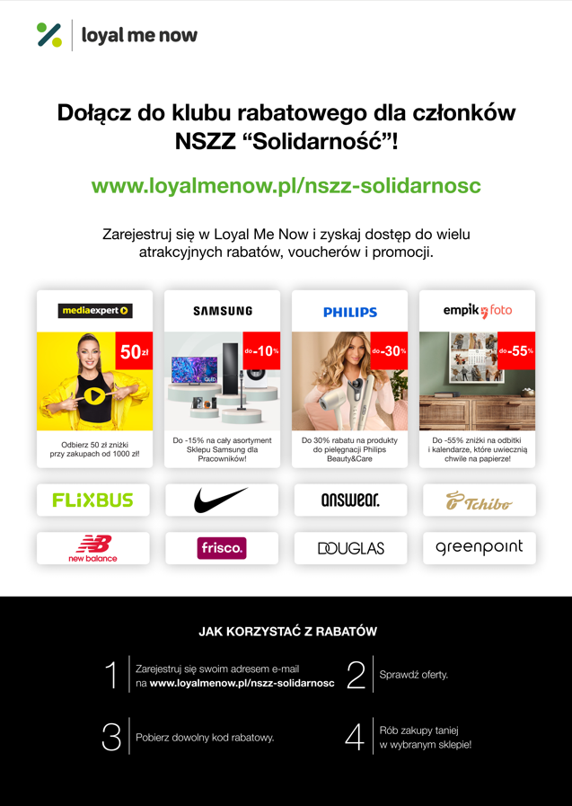 Od 8 października członkowie NSZZ Solidarność mogą korzystać z nowego