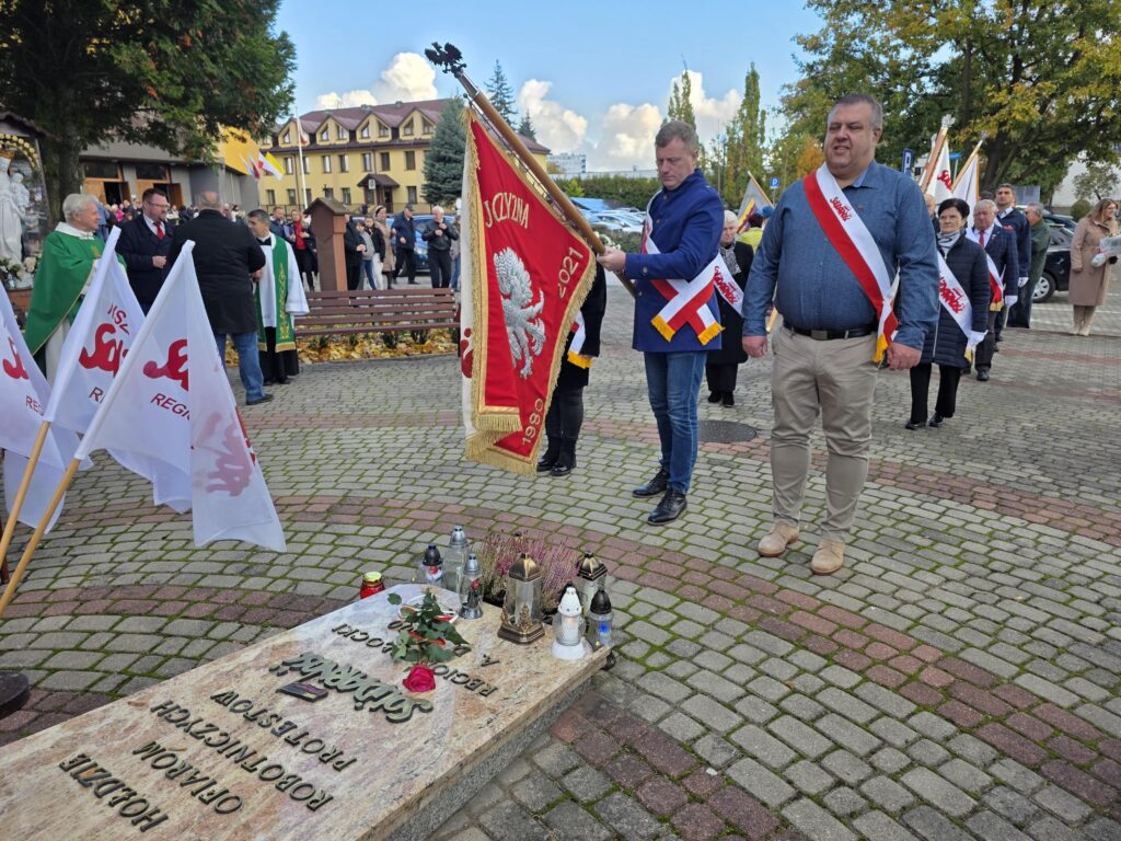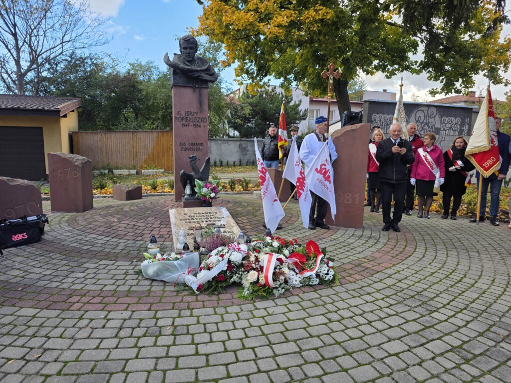 Po zakończeniu Mszy Świętej, uczestnicy udali się pod pomnik Protestów Robotniczych i Bł. Ks. Jerzego Popiełuszki, aby złożyć kwiaty i zapalić znicze, oddając hołd tym, którzy walczyli i cierpieli za ideały wolnej Polski.