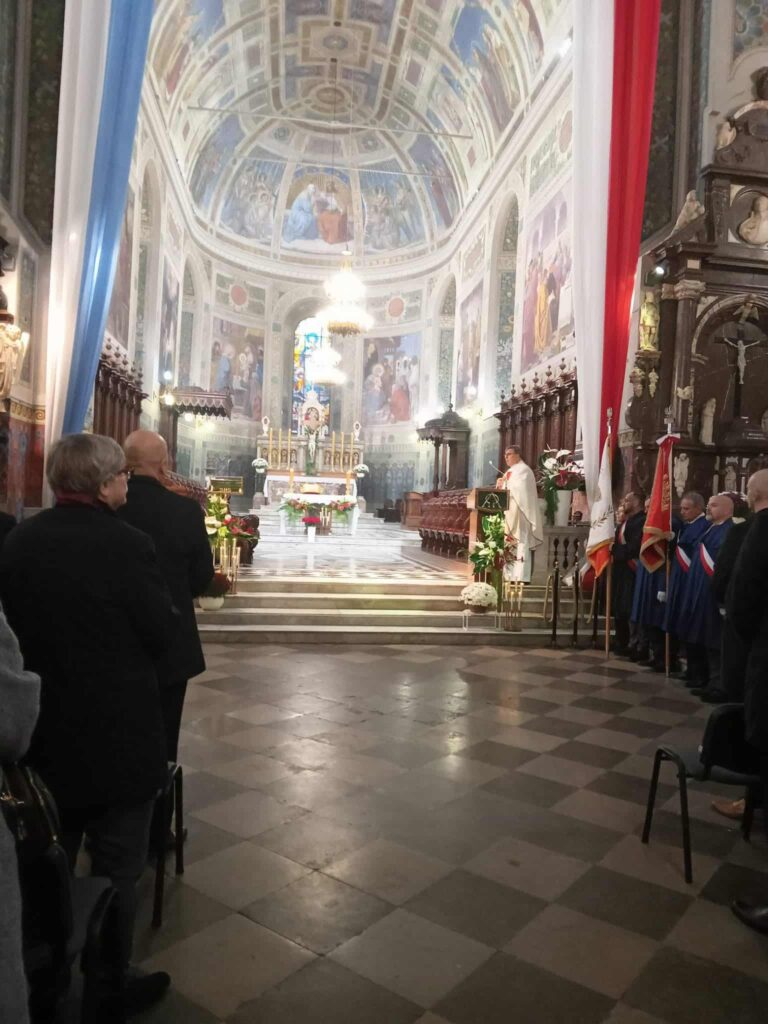 Następnie przemaszerowano do płockiej Bazyliki Katedralnej w której pod przewodnictwem J.E. ks. Szymona Stułkowskiego – Biskupa Płockiego została odprawiona Msza Święta.   Była Ona chwilą refleksji i modlitwy za Ojczyznę, jej bohaterów oraz wszystkich, którzy przyczynili się do odzyskania wolności przez Polskę.